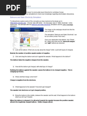 Balloon And Travoltage Answers Electric Charge Electrostatics