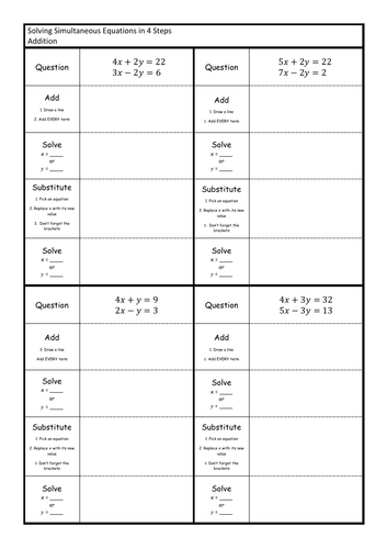 Simultaneous Equations Add Sub Scaffolded Teaching Resources