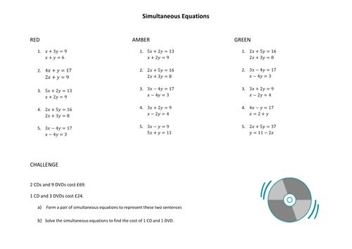 Powerpoint And Worksheet For Simultaneous Equations Teaching Resources