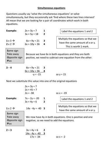 Linear Simultaneous Equations Gcse Mathematics 9 1 Teaching Resources