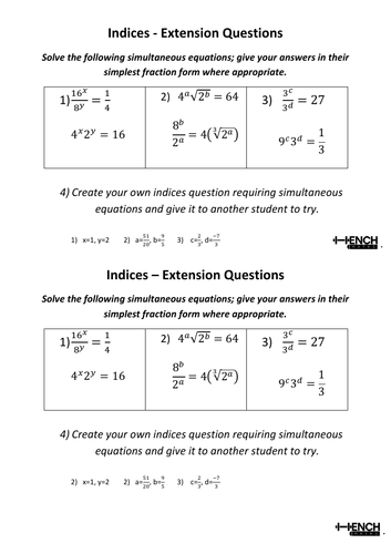 Difficult Indices Q S Simultaneous Equations Teaching Resources
